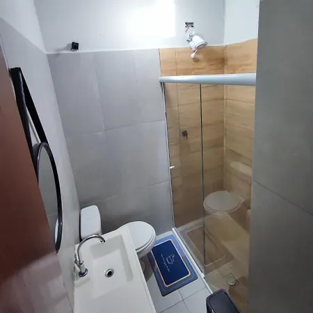 At Casa Studio" Sao Jose Dos Campos, a separate toilet and a shower have been provided to enhance your comfort. Bath sheets are also included in the bathroom.